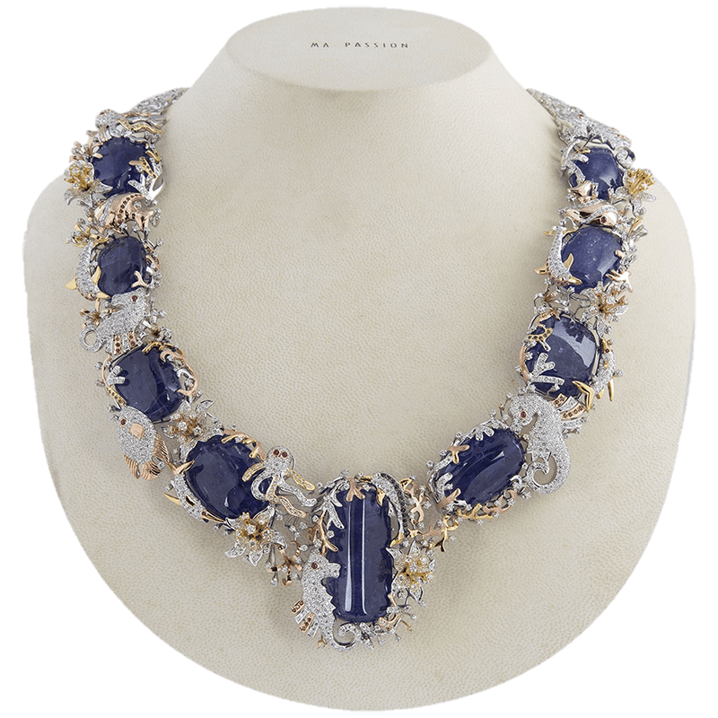 Made to be one-of-a-kind, each Ma Passion creation intends to dazzle and shine with a unique spectral light that elevates the mundane into the realm of surrealism. Carved with precision and the artistic quest for excellence, these exquisite creations inspire many myths and legends. The gemstones are sourced from all over the world and are individually handpicked to ensure exclusivity. Once the stones are set within the frames and designs, the creations traverse the territory of fine ornamentation and become one cohesive unit. The most stunning pieces are hand-carved and set in 18K gold, bringing grand old traditions of Indian royalty to life.