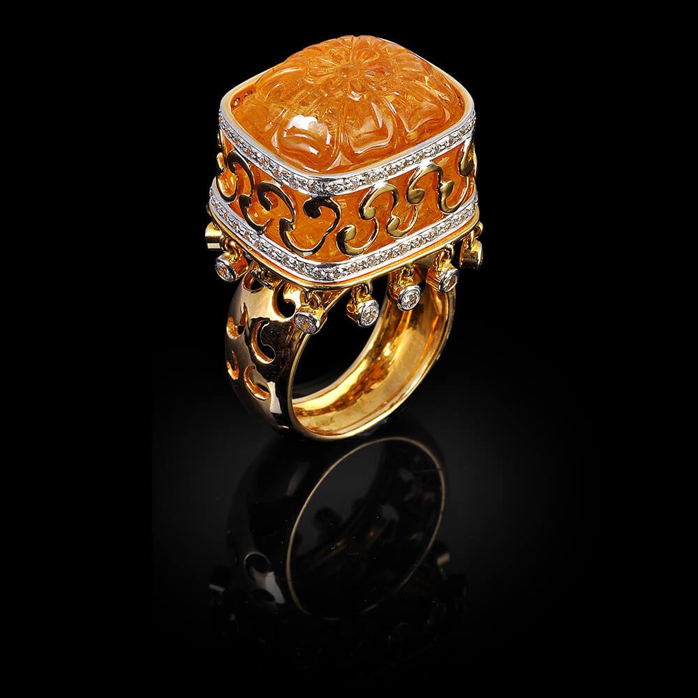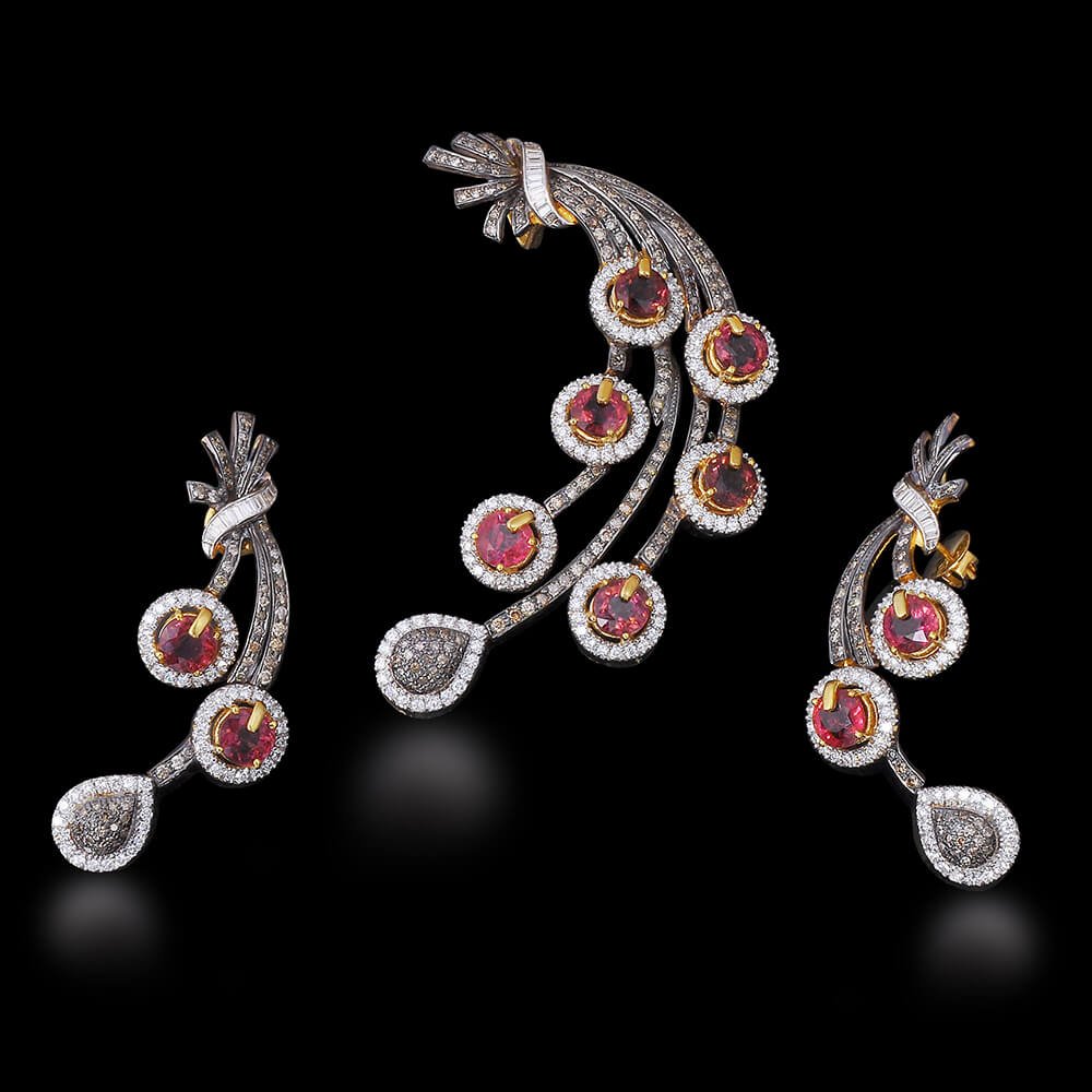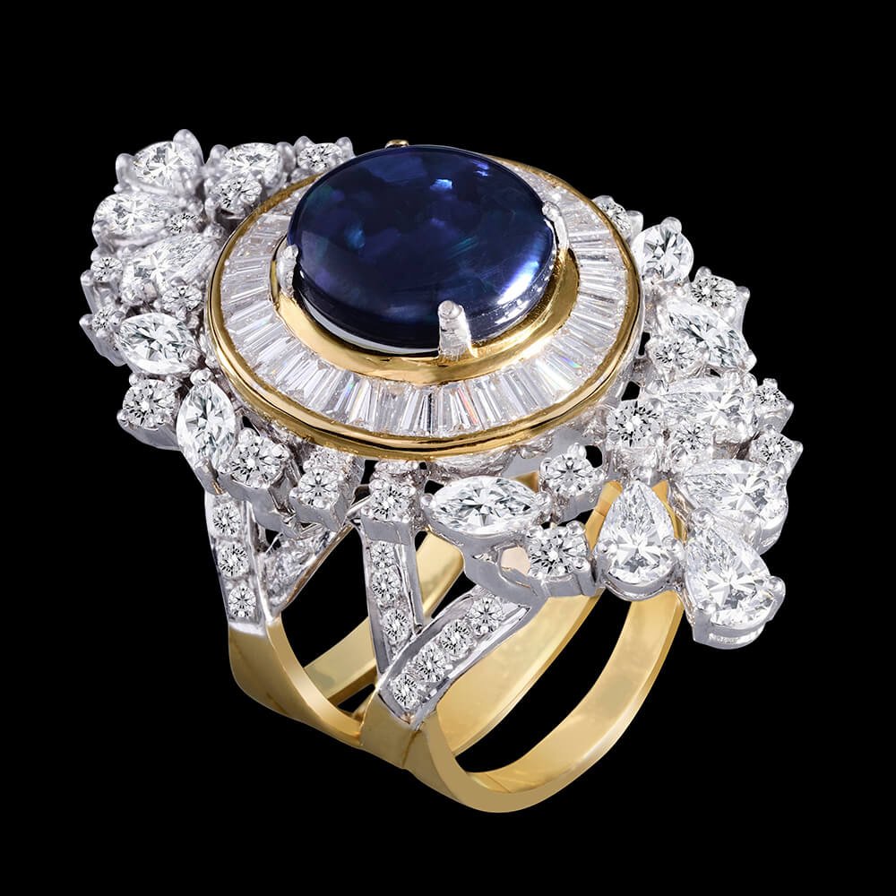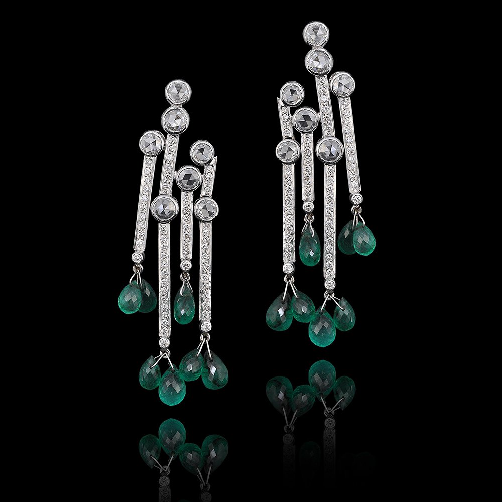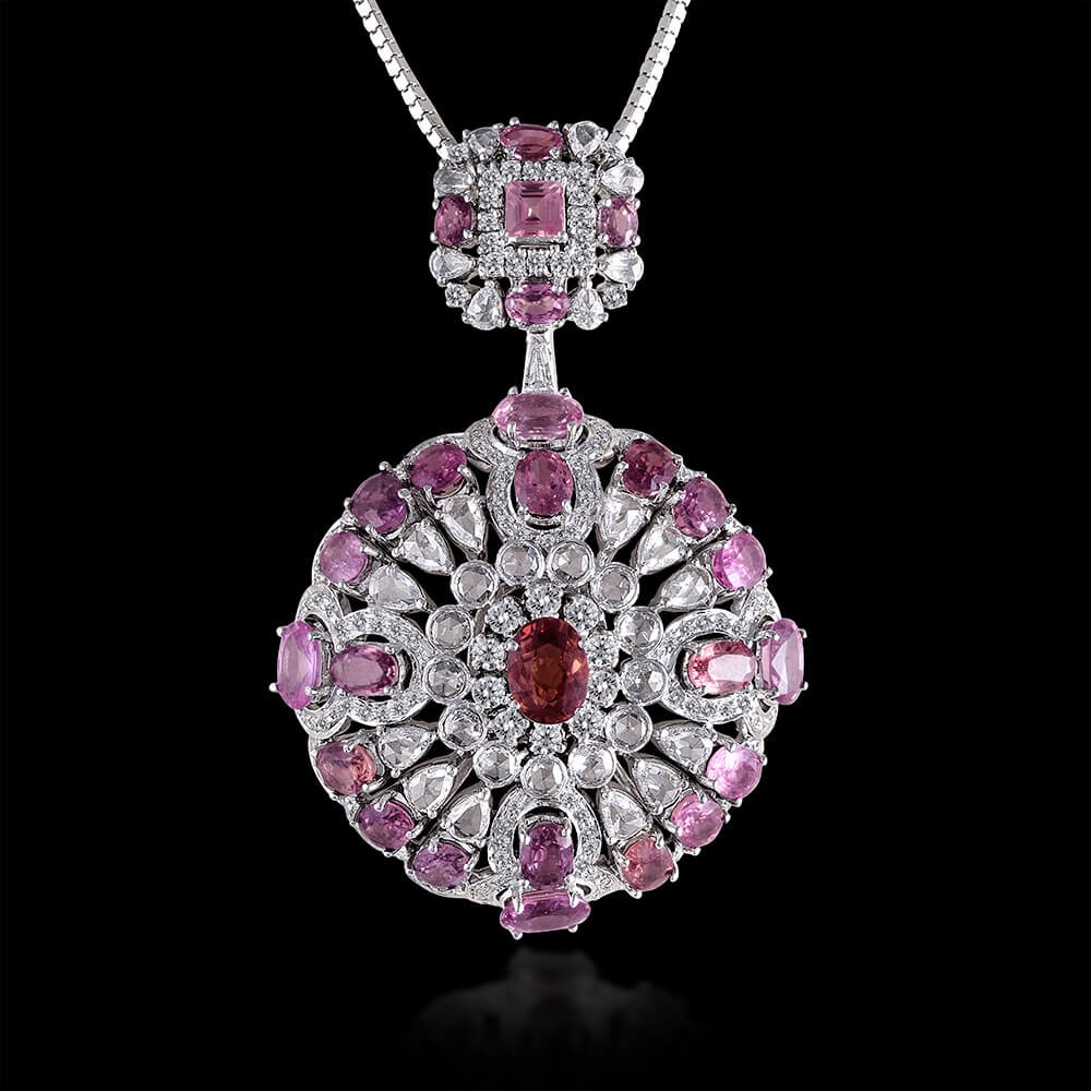 Carved Peacock in Blue Sapphire, Emerald Beads and Diamond Necklace