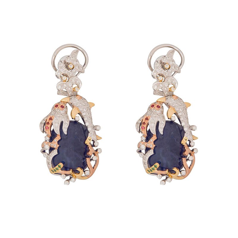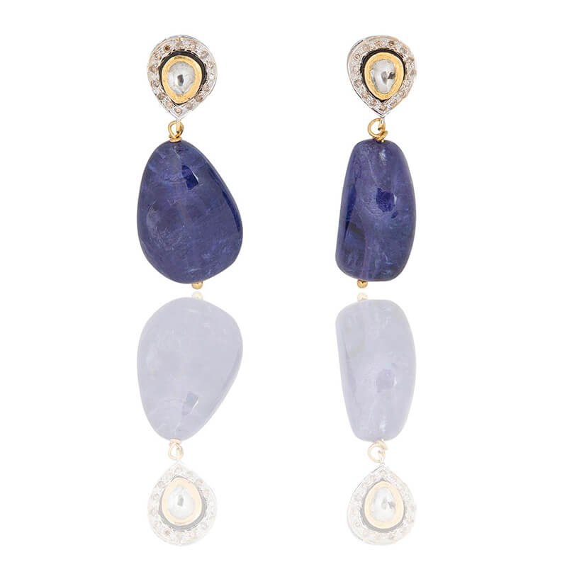 Tanzanite and Diamond Necklace and Earrings with Black Meena Work