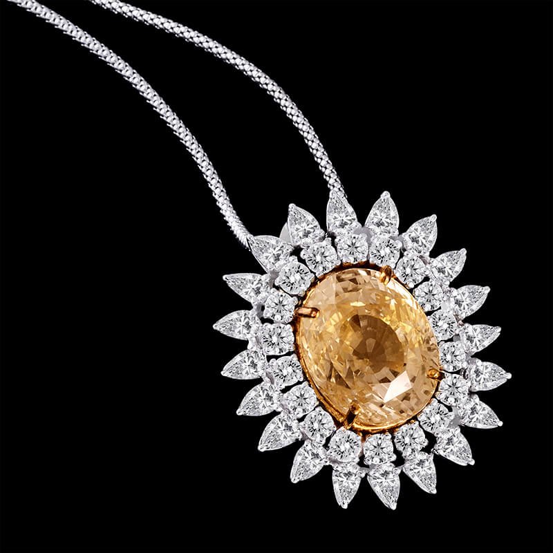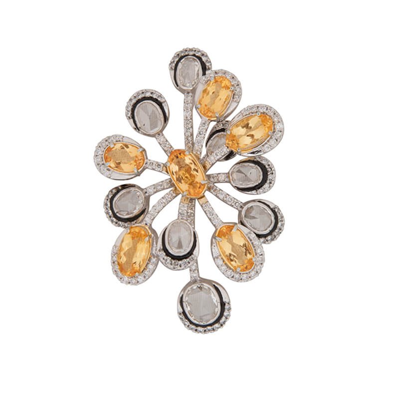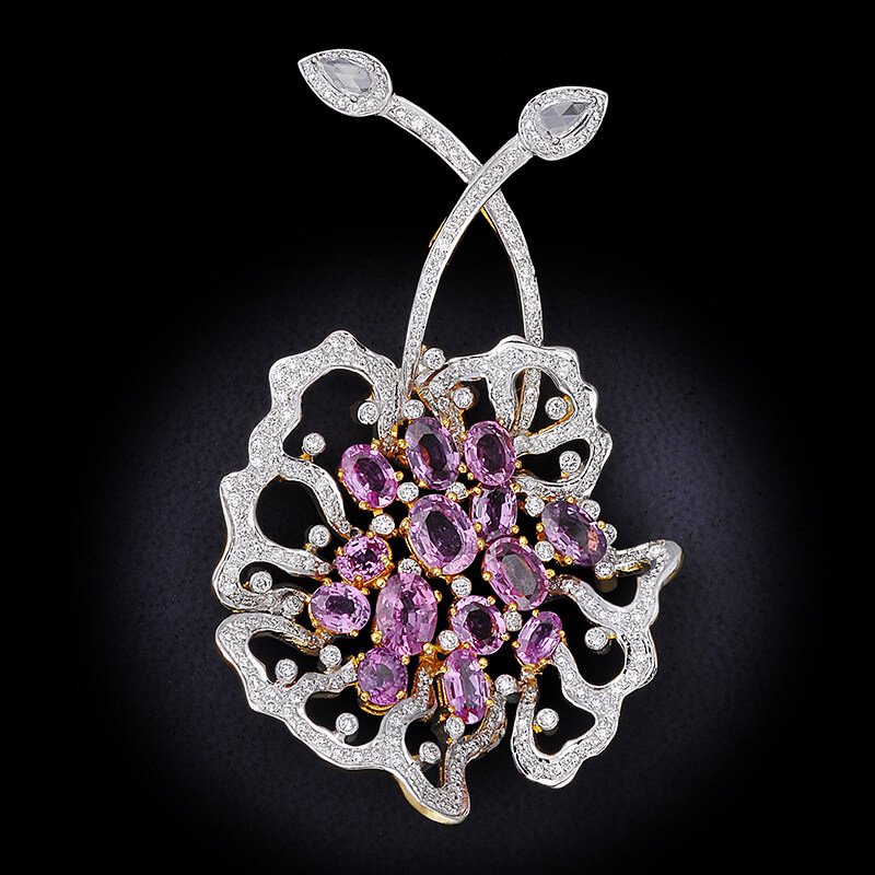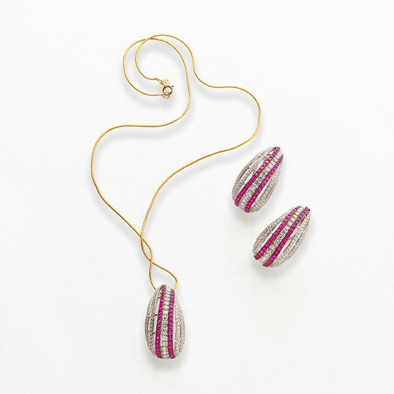 Pink Sapphire and Diamond Pendant and Earrings in Floral Design