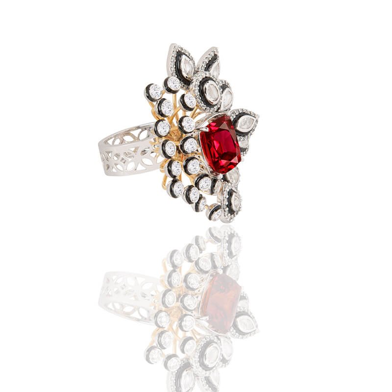 7. Hessonite and Diamond Ring