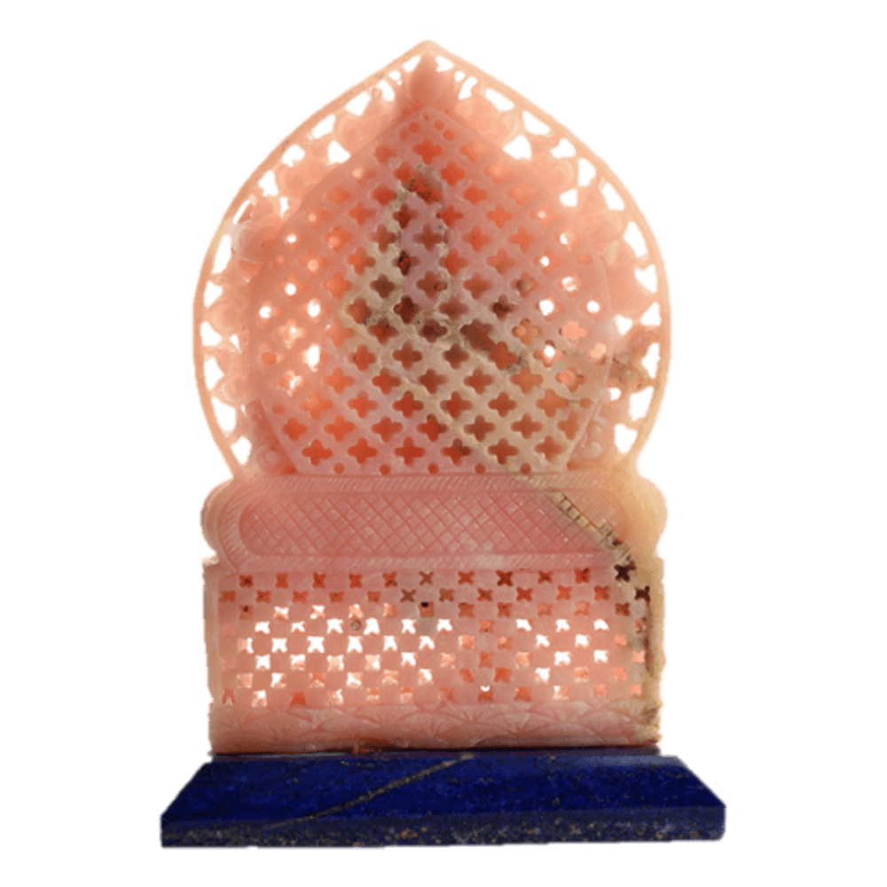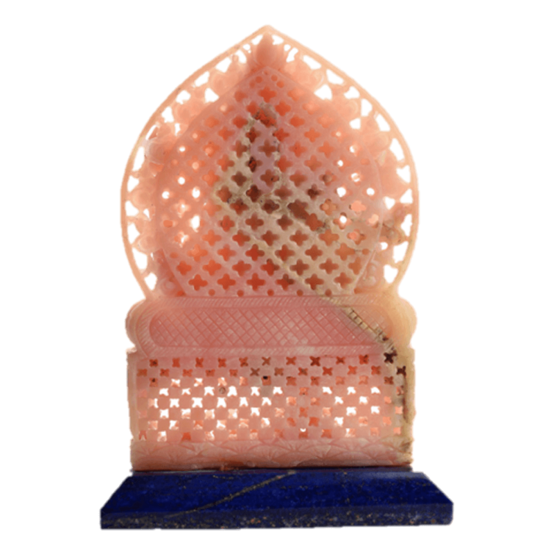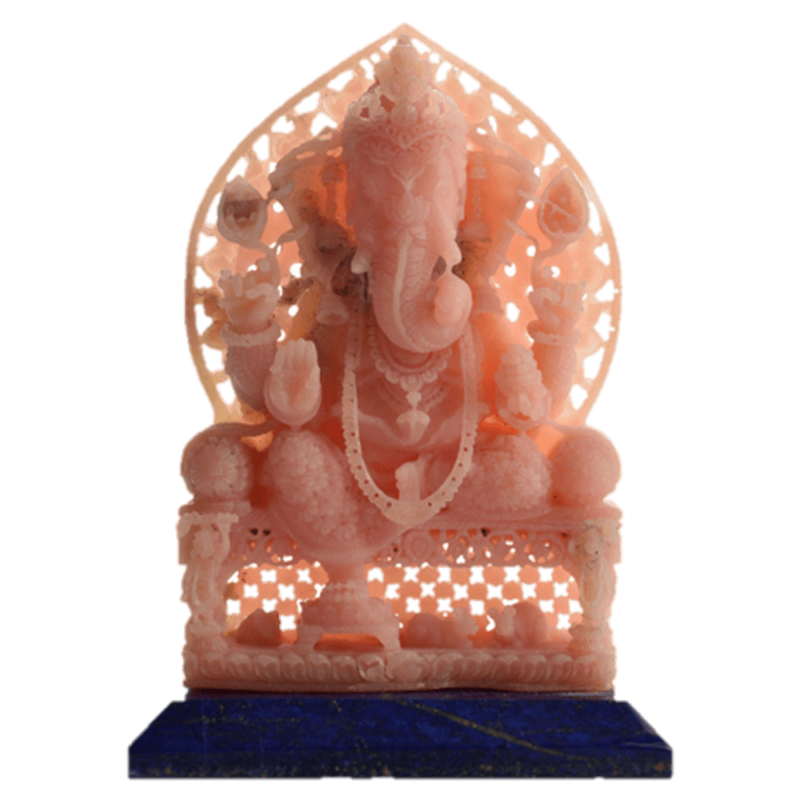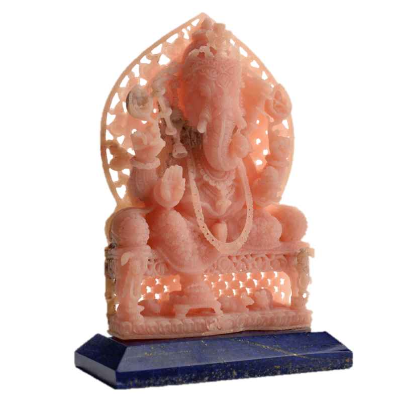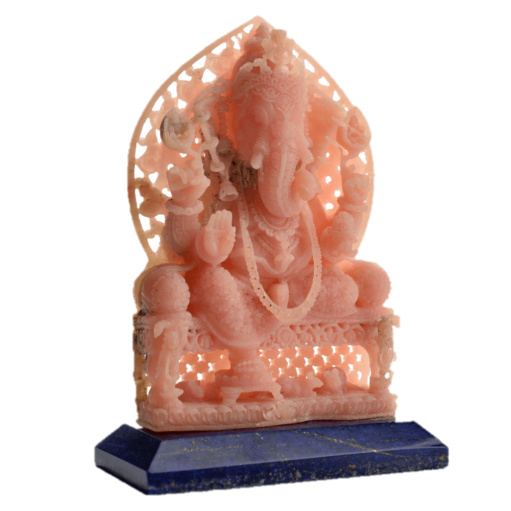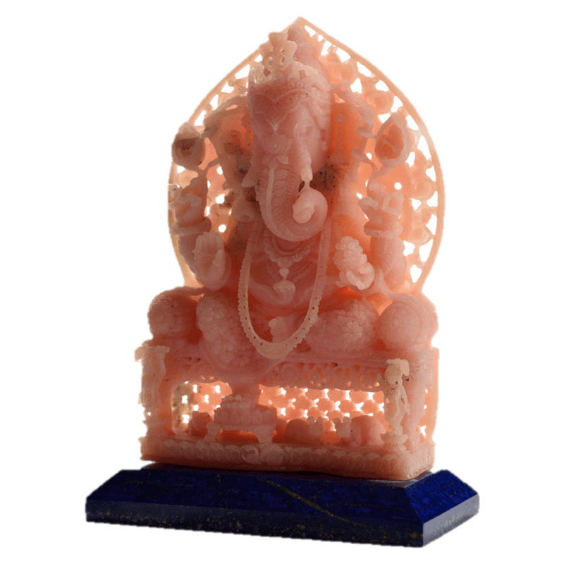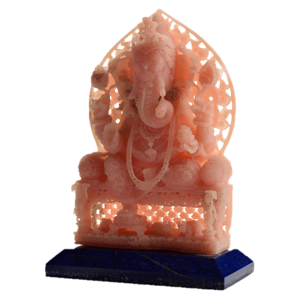 A Peruvian treasure, this piece of Pink Opal showcases a beautiful pastel pink colour with a matte finish. Our master craftsman has used the last mile techniques of gemstone carving to carve every inch of the stone; the intricate jaali work at the top and bottom of the carving along with the elaborateness of Lord Ganesha’s ornaments and garments make the creation a true symbol of rich Indian craftsmanship. It is a masterpiece that will has never and will never exist again.