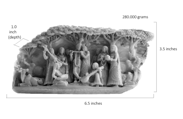One of Ma Passion’s most exclusive carvings, this masterpiece took two years to create. Our oldest master craftsman has effortlessly carved every inch of the special Grey Opal that was home to the Lightning Ridge mine in South-East Australia. The level of detail in this 6.5-inch-long tableau is mesmerizing; the depth created with the mountains at the back and the Gods and animals in the foreground adds a three-dimensional characteristic to the carving. This creation symbolizes the very essence of Ma Passion as we continue on our journey to combine the highest form of Indian craftsmanship with rare gemstones from all over the world.