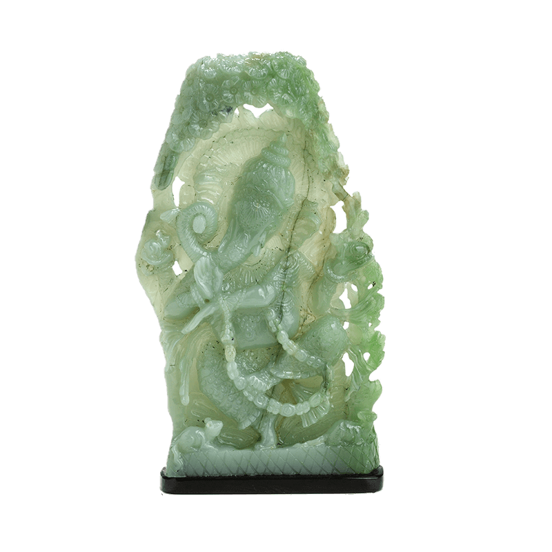 Ganeshji on Lotus with Riddhi-Siddhi in Lavender Burmese Jade