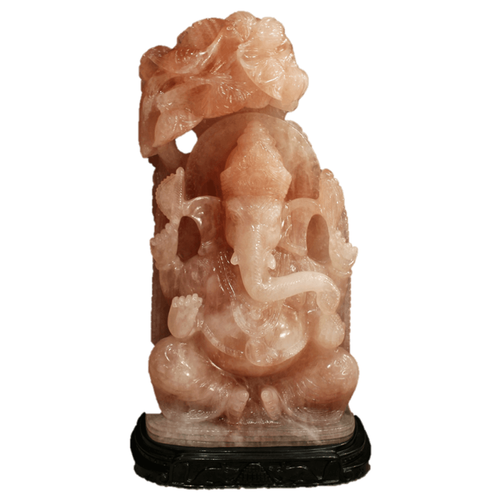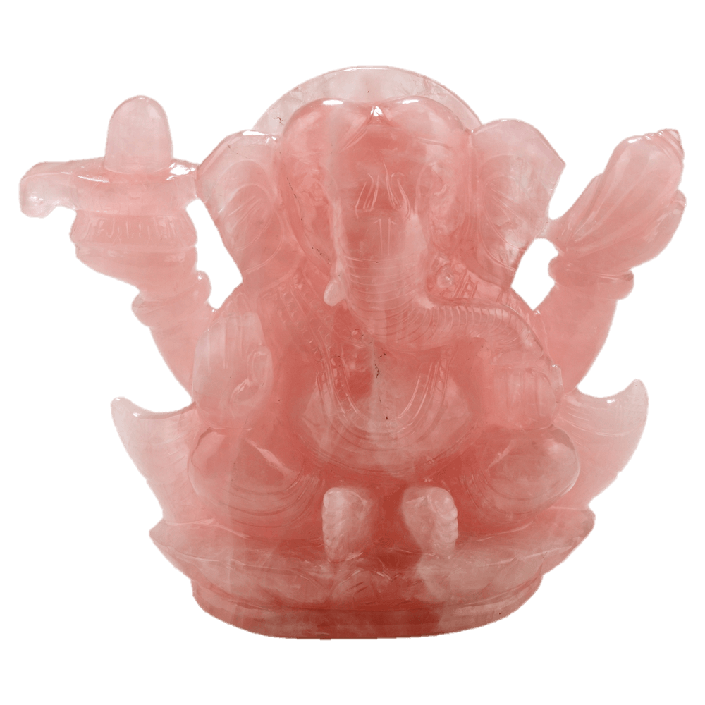 Ganeshji in Rose Quartz with Shivling and Shankh
