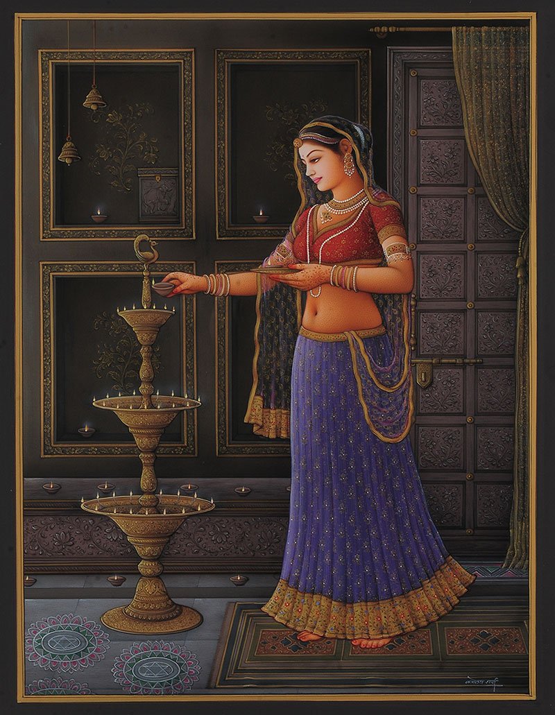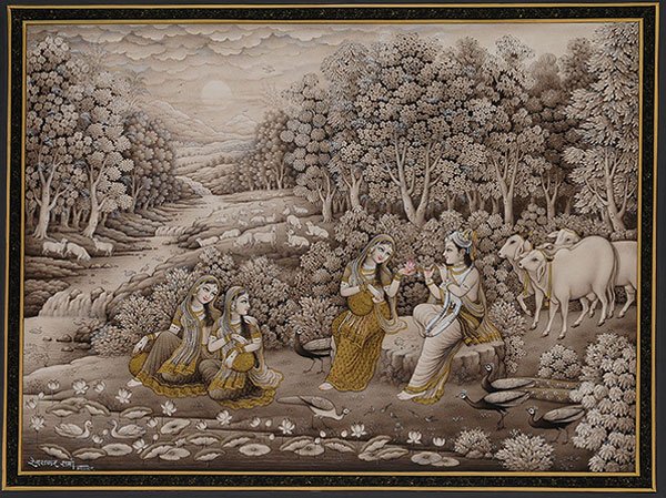 Stamped with a typically Indian idiom of miniatures, the paintings by Ma Passion are meant for those with an inherent appreciation of aristocratic folk art. With watercolours and oil paints etched onto handmade papers and canvases, the compositions bring to life the lyrical rhythms of brush and pigments. Evolved from a Mughal style that is heavily influenced with Persian and Western elements, the paintings also indicate a Rajput strain derived from Hindu mythologies and epics as well as Islamic histories and chronicles. The talented painters come from families that belonged to the guild of the Mughal and Rajput courts and they continue to address issues of modern times as well as the post-colonial predicament to this day.